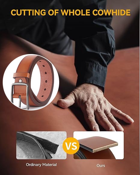 The belt is made from a single piece of cowhide, with no fillers or bonding process, ensuring the natural texture of every inch of leather. This provides a more durable and comfortable wearing experience.